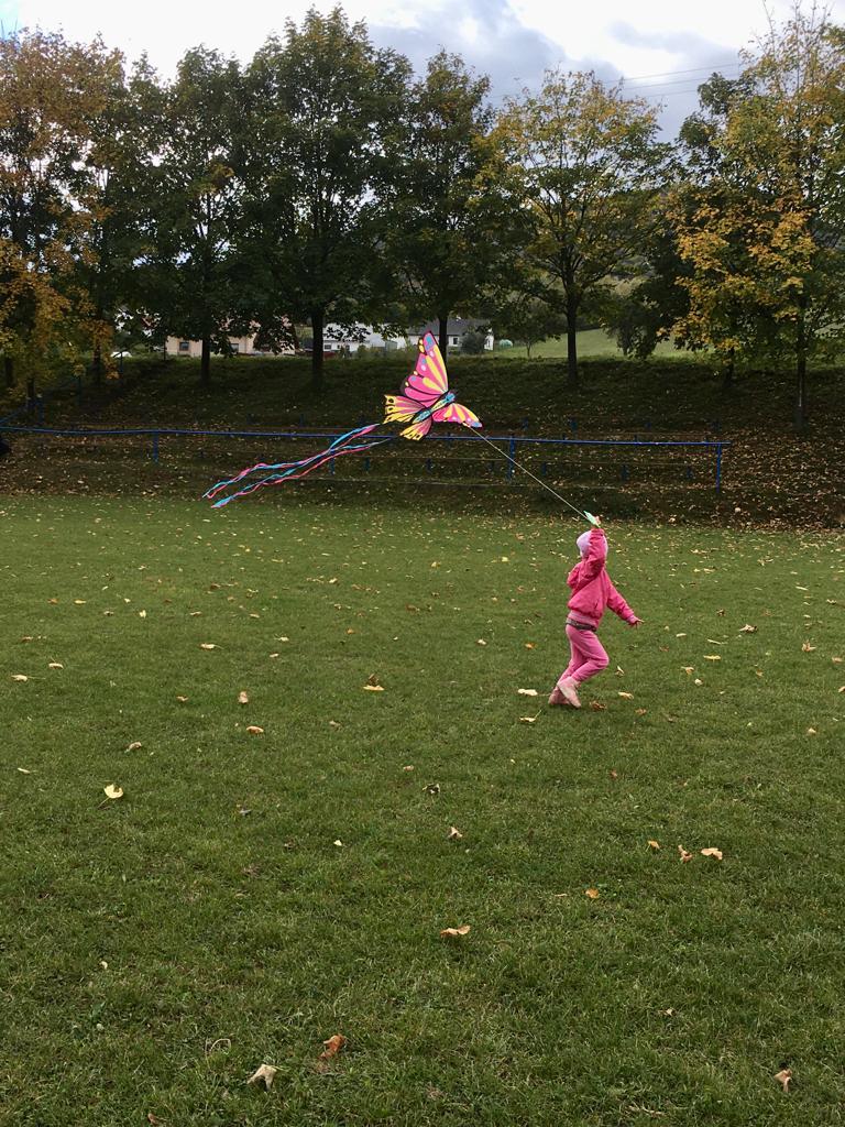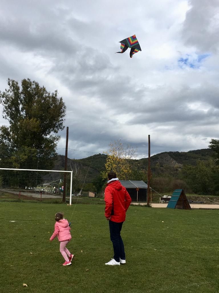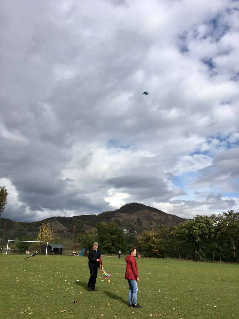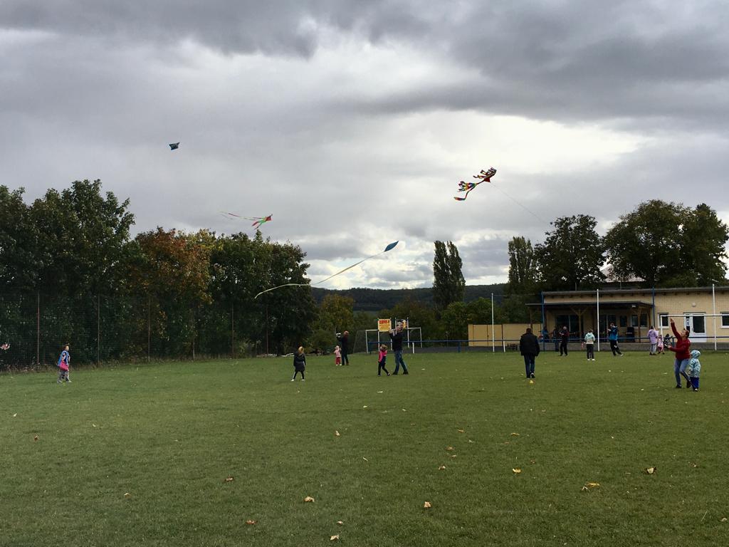Pouštění draků na prackovickém fotbalovém hřišti.