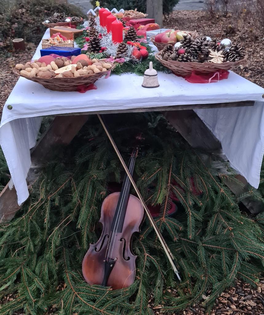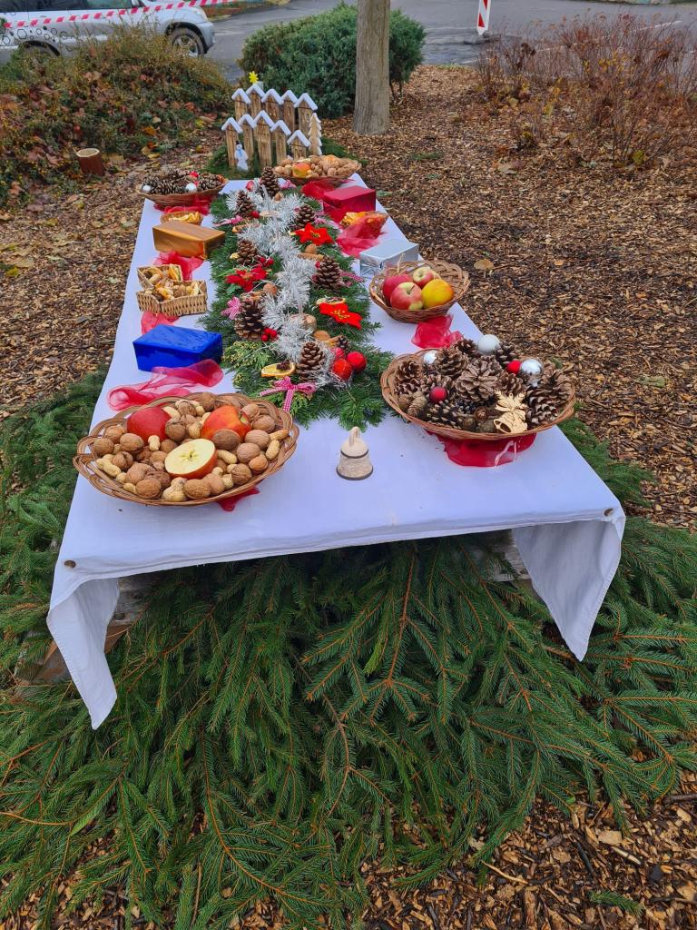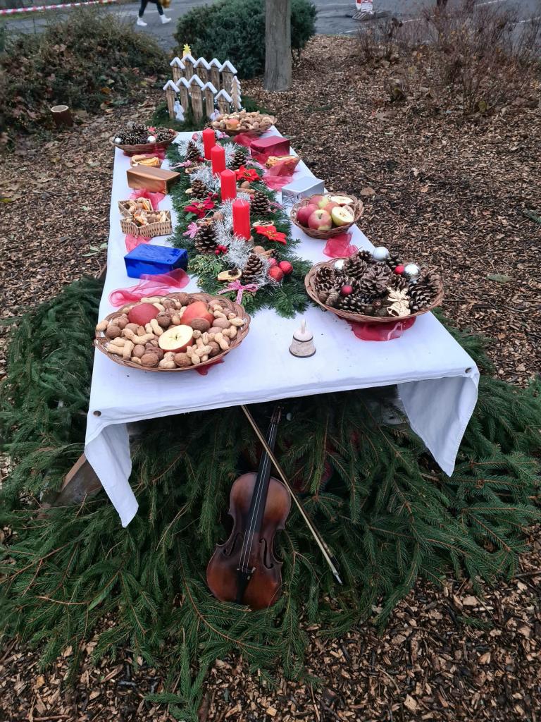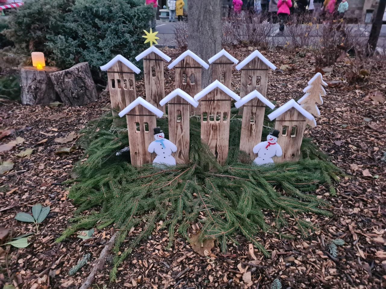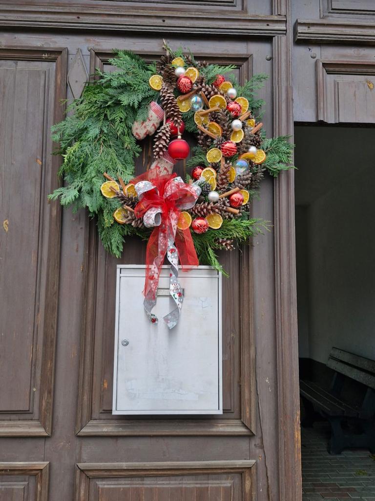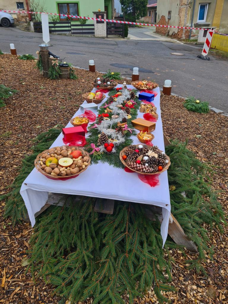 Předvánoční výzdoba na návsi v Prackovicích nad Labem.