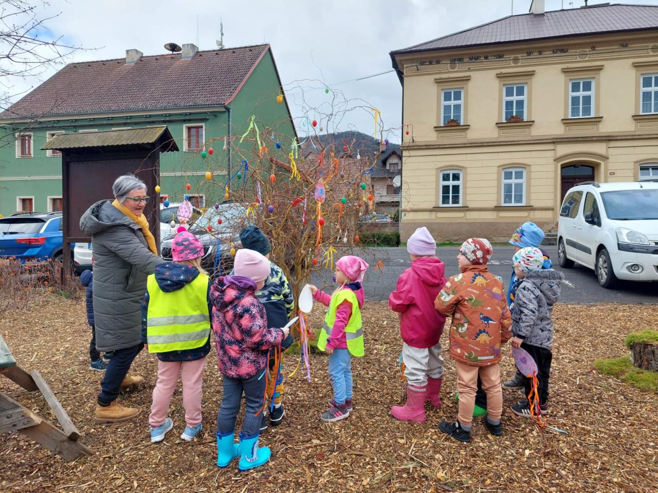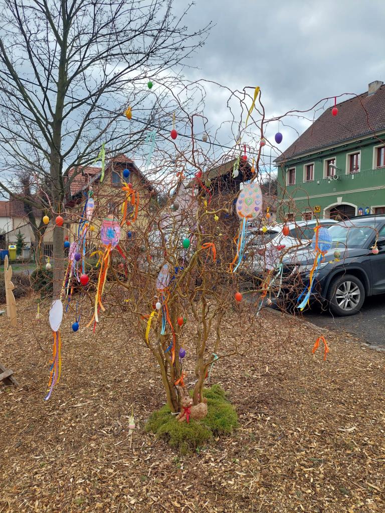 Děkujeme kolektivu a dětem z MŠ Brouček za krásné dozdobení našeho "velikonočního stromku" v parčíku na návsi.