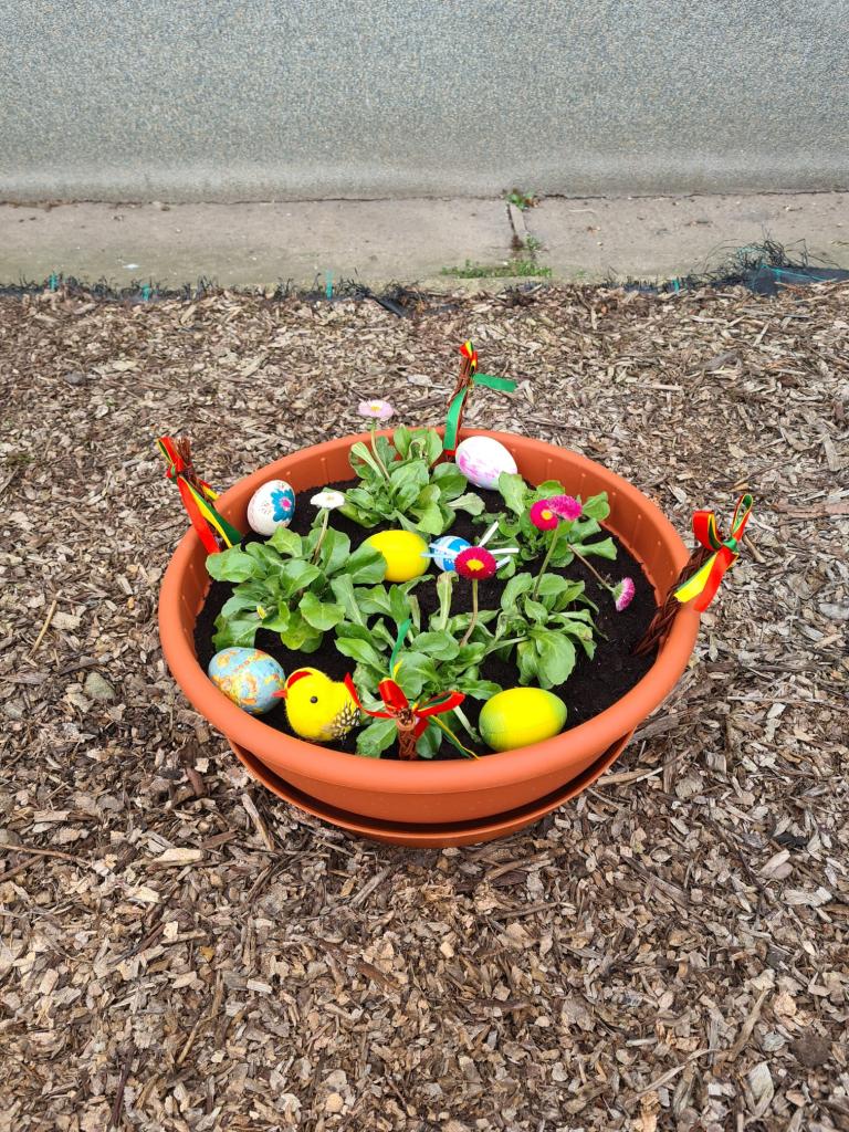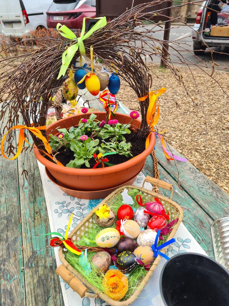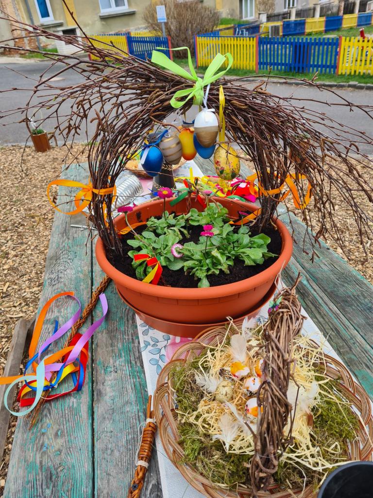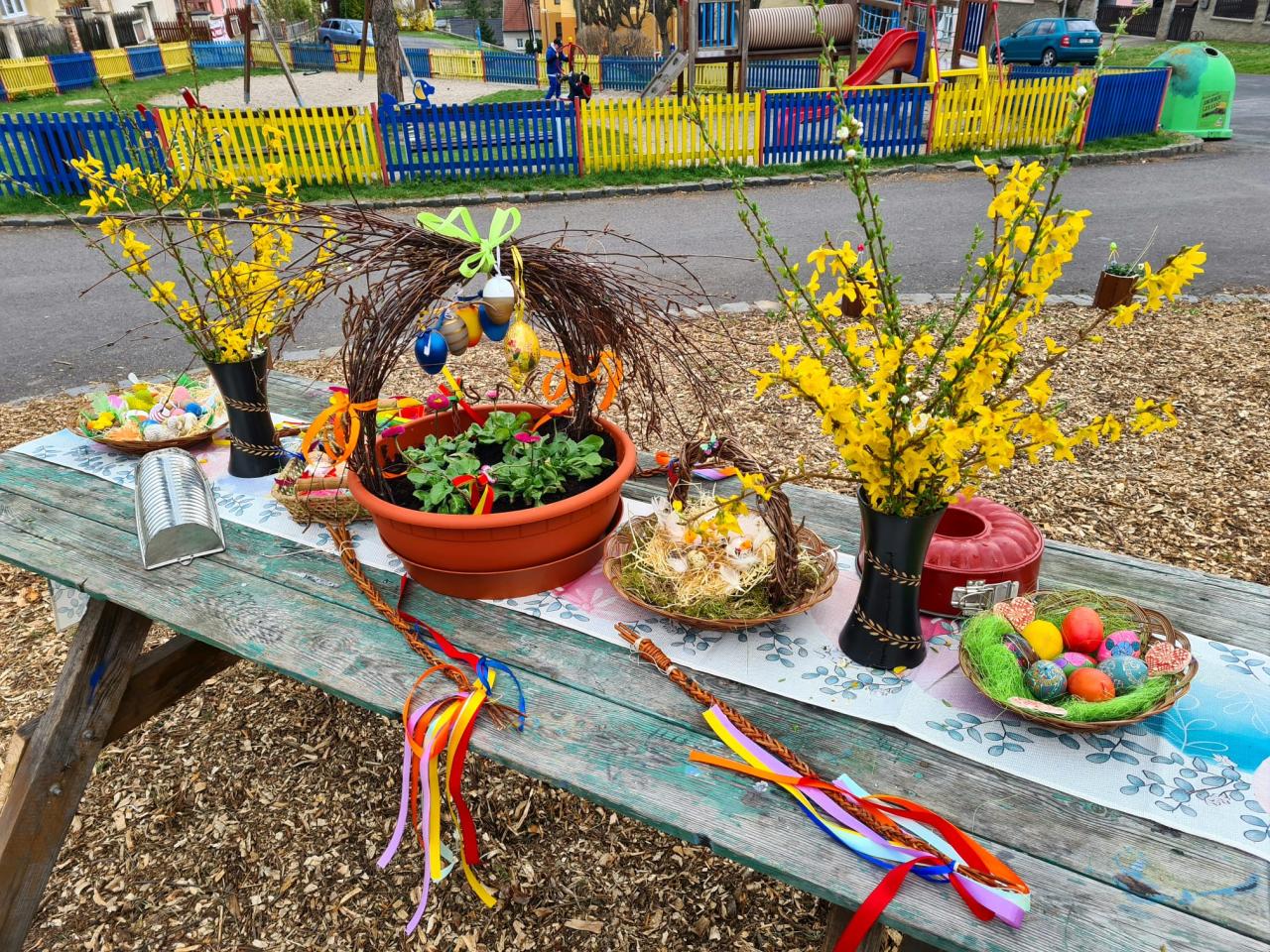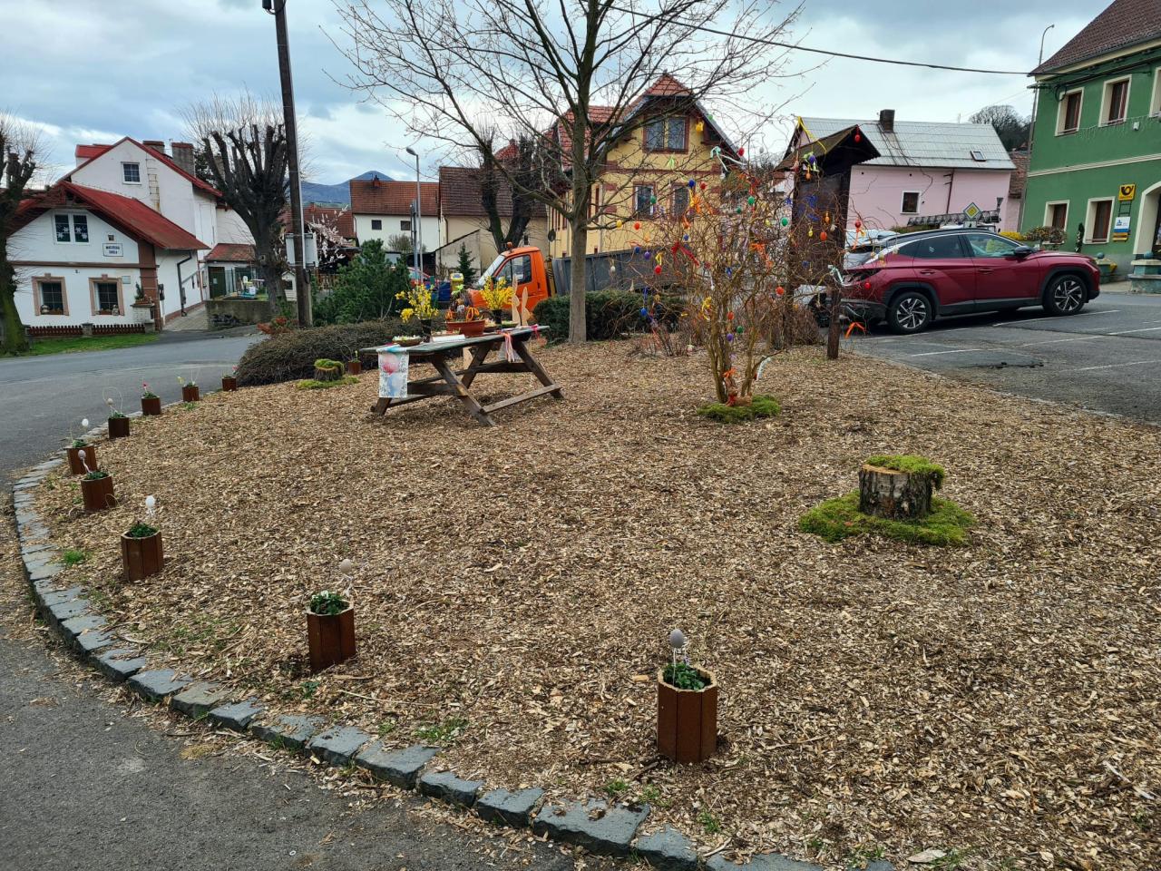 Velikonoční výzdoba obecního úřadu a parčíku na návsi