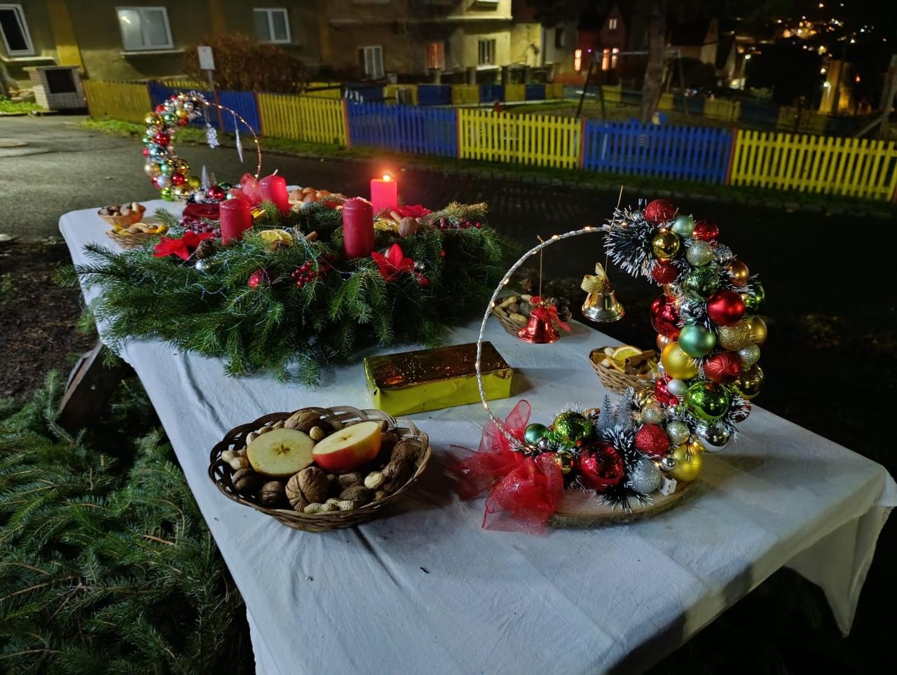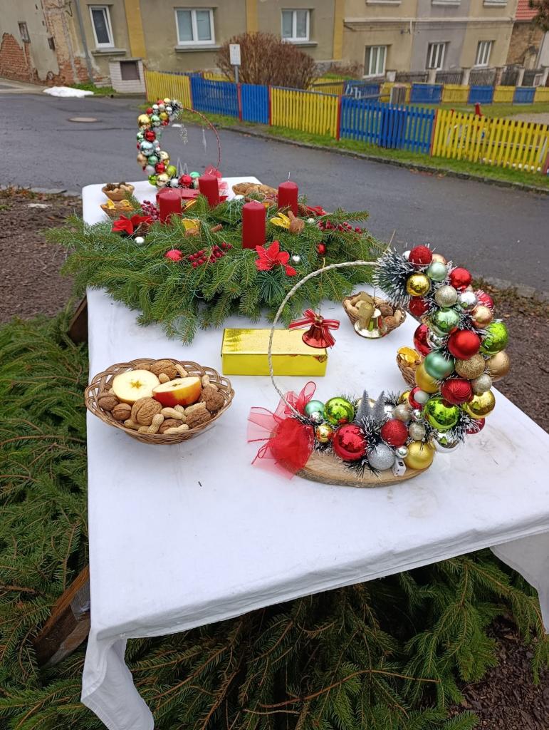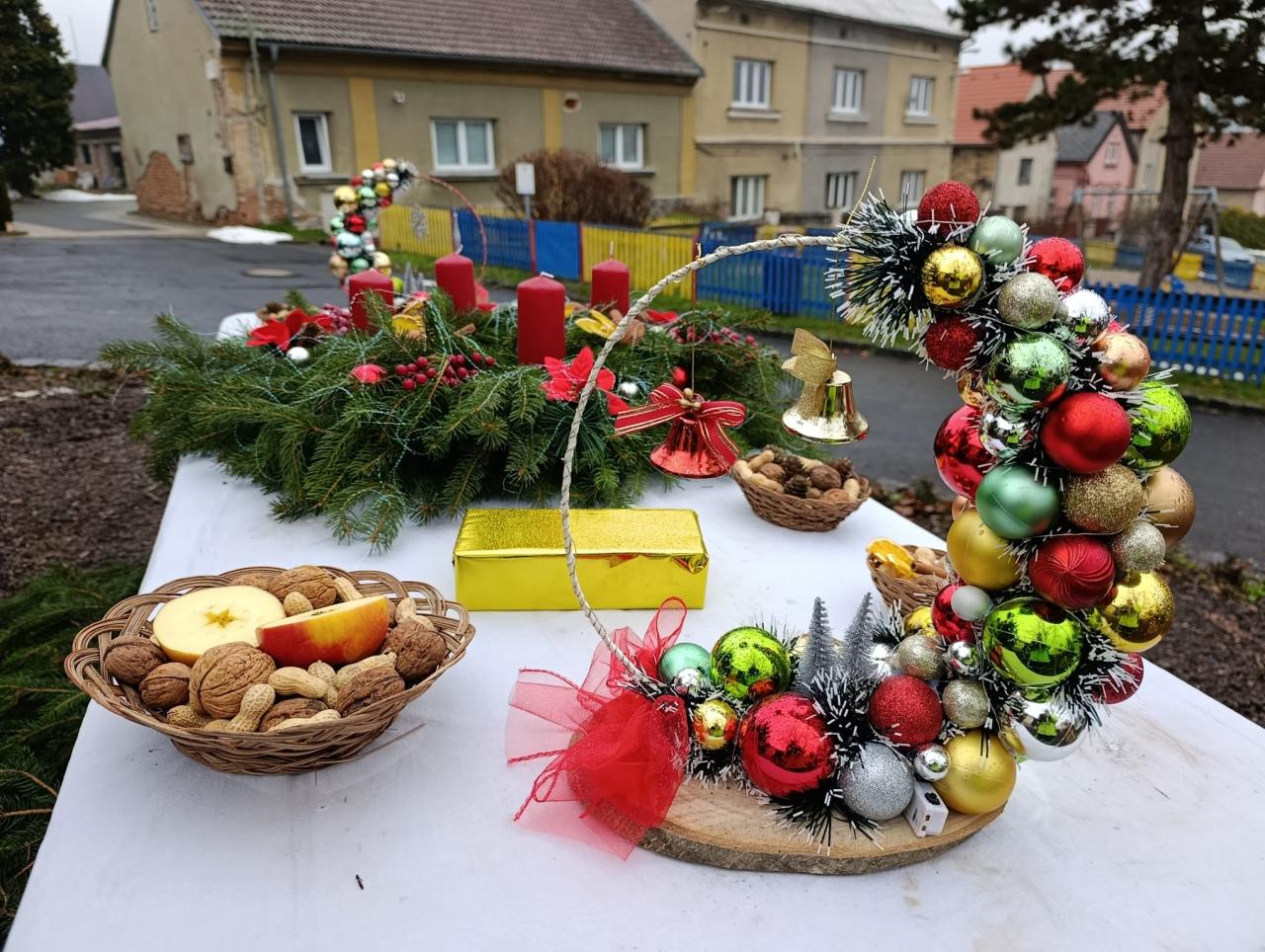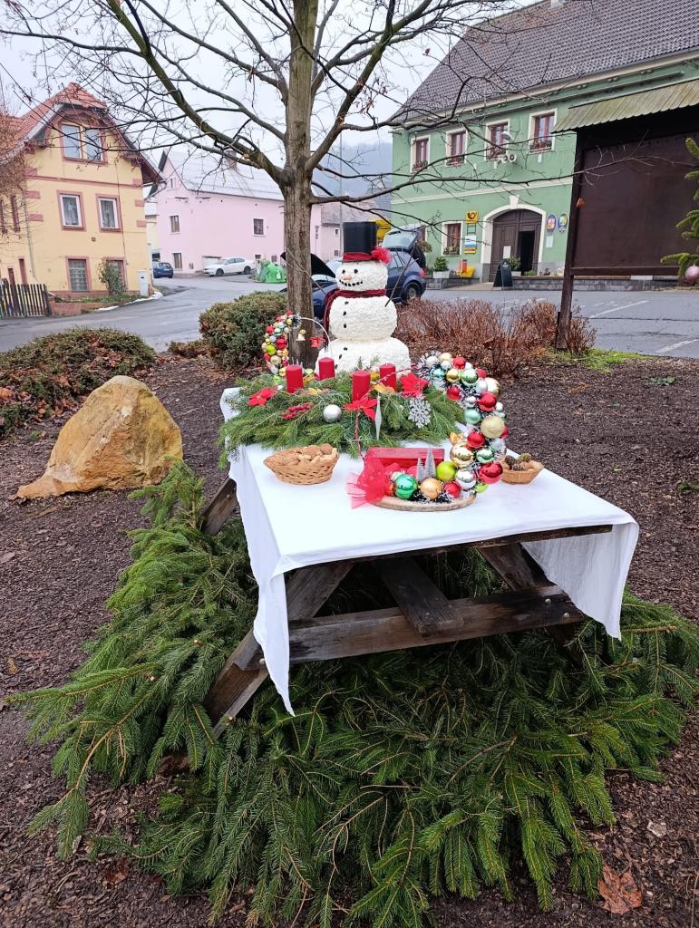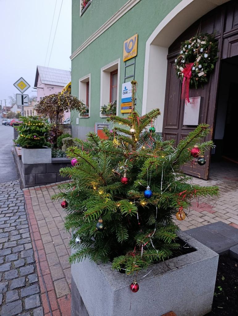 Vánoční výzdoba parčíku a předzahrádek OÚ v Prackovicích nad Labem.