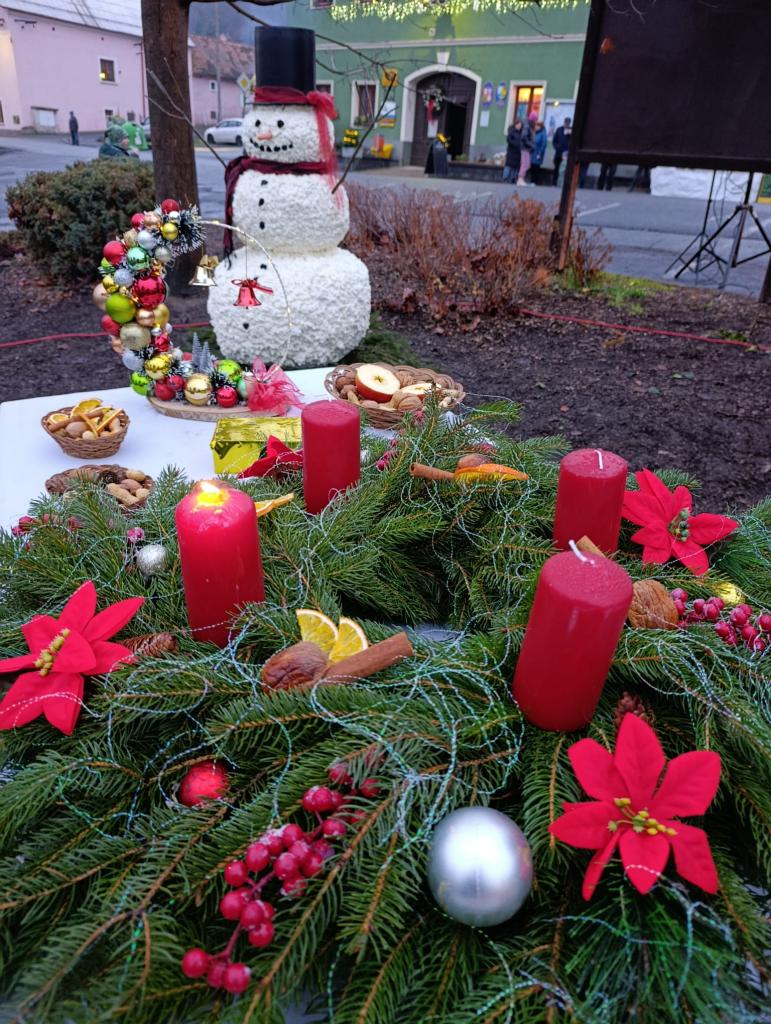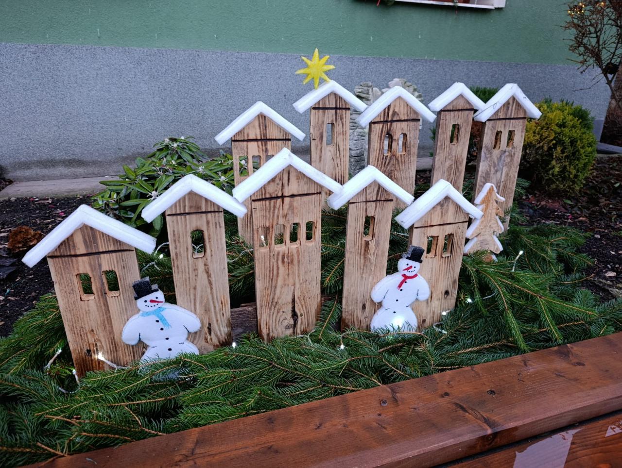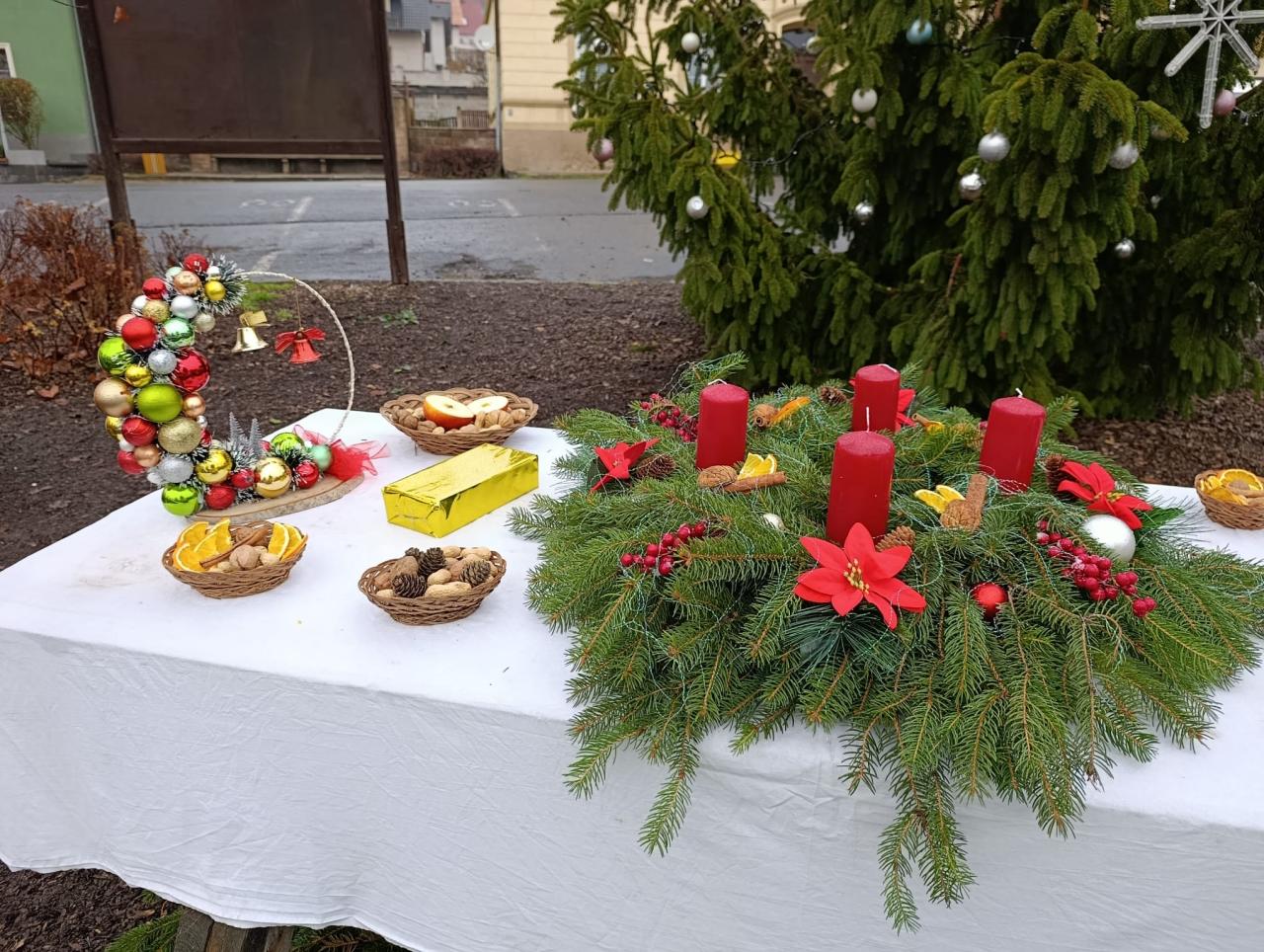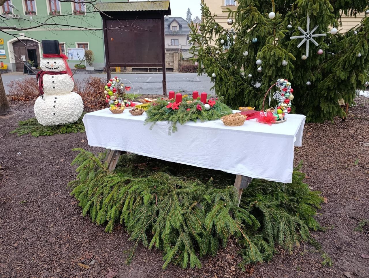 Vánoční výzdoba parčíku a předzahrádek OÚ v Prackovicích nad Labem.
