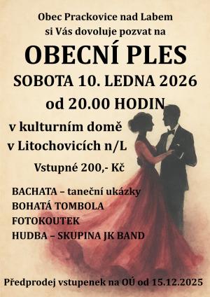 Druhý ročník obecního plesu se uskuteční v sobotu 10.1.2026. Předprodej vstupenek na OÚ od 15.12.2025.
